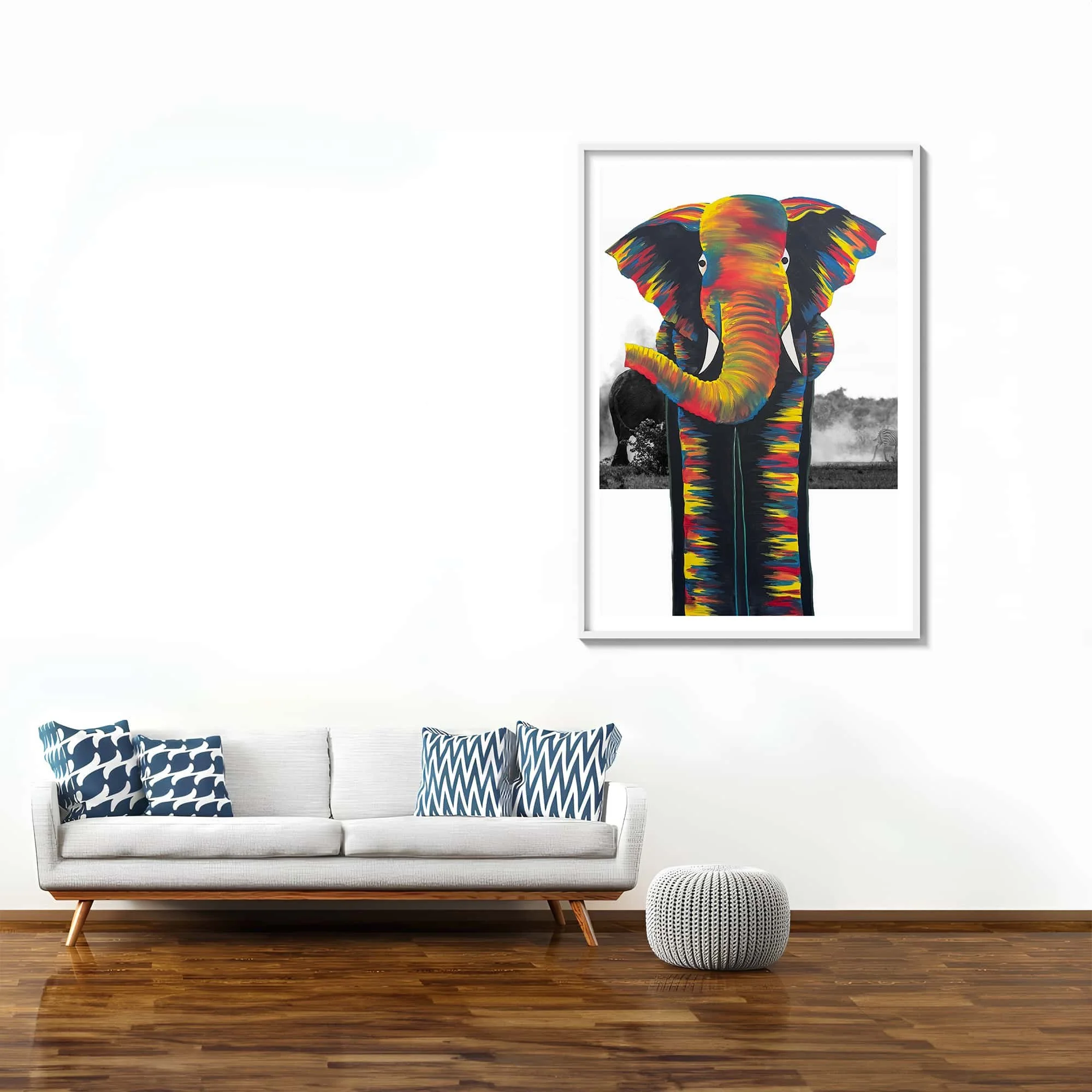 Shop a limited collection of colorful art prints inspired by the colors of African savanna. This collection includes geometric abstracts in bold, vivid colors, colorful elephants, and daily life scenes. These art prints capture the celebration of everyday life shared with family and wildlife that brings positive energy to a space. Items from this collection are available to purchase. #noblankspaces